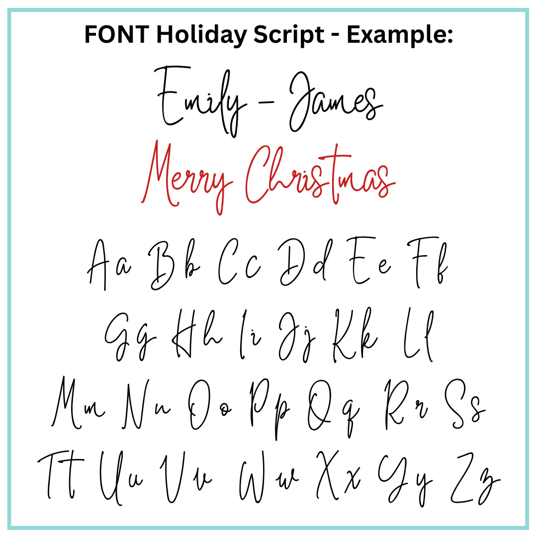 - Choose “Merry Christmas” or personalised name (two font options)
